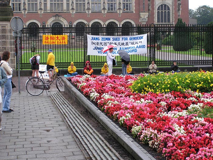 世界司法日 荷兰法轮功学员在国际法庭前和平请愿 支持诉江案(图)