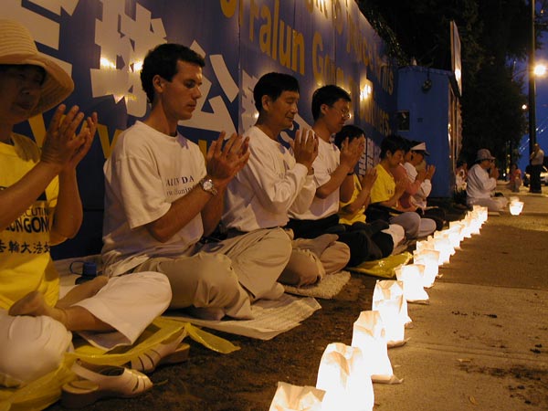 当天晚上7点,法轮功学员又赶到中国驻温哥华领事馆前,举行烛光守夜,纪念在过去四年中被江氏集团迫害致死的大陆法轮功学员。