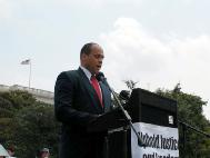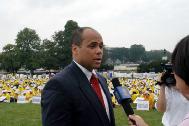 华府绿党主席爱德华.奇克.特洛依在反对镇压法轮功集会上致词华府绿党主席接受媒体采访