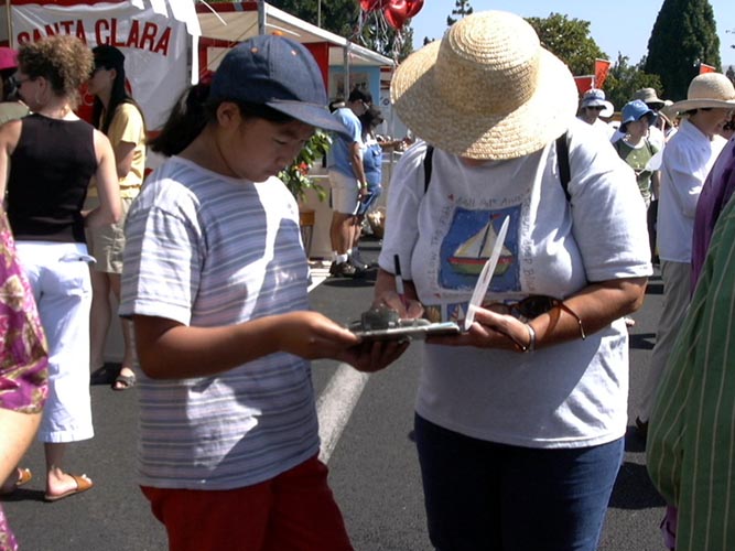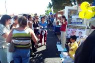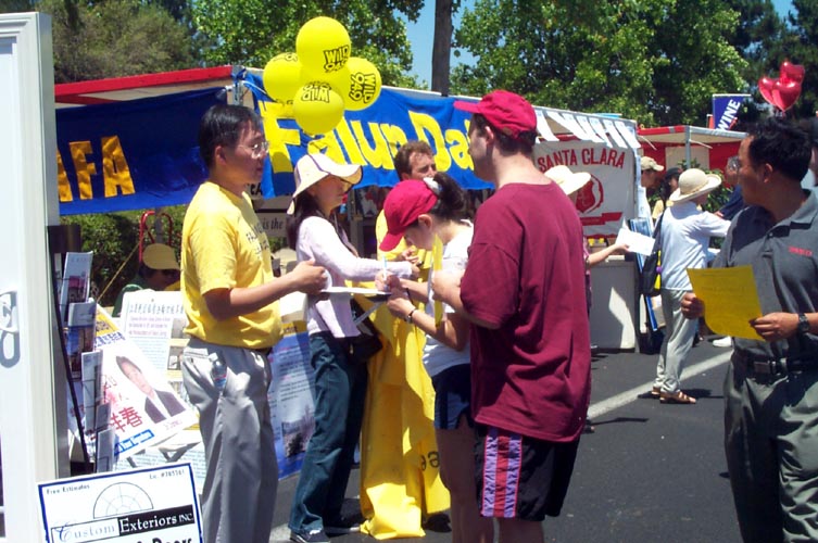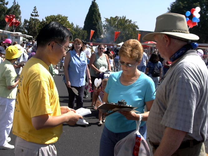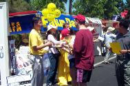 【明慧网2003年7月27日】7月26日,旧金山湾区的法轮功学员为了营救李祥春,让更多的民众了解美国公民、法轮功学员李祥春医生被中国江氏集团非法关押和虐待,参加了一年一度的加州佛利蒙(Fremont)市艺术节。学员们在这里分发真象资料和征集签名。活动为期两天,主办者表示每年都会吸引将近40万人,这是加州最大的免费街道节日。