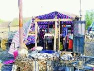 | 受灾农民住在临时搭建的棚屋里 | 坦坝决口处 | 过水后的农田被淤泥覆盖 |