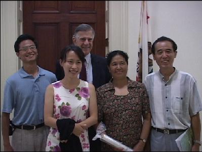 【明慧网2003年7月29日】中国大陆的法轮功学员卞旭庄和申淑敏在美国国会议员的帮助下,不久前从泰国被营救来美。7月21日,他们在华盛顿DC法会期间来到国会山庄,感谢加州国会议员彼得-斯塔克(Pete Stark) 在他们处于危险的情况下帮助了他们。