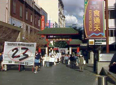 | 悉尼领事馆前的新闻发布会 | 上演立法后给各行业带来的灾难 | 中国城的大游行 |