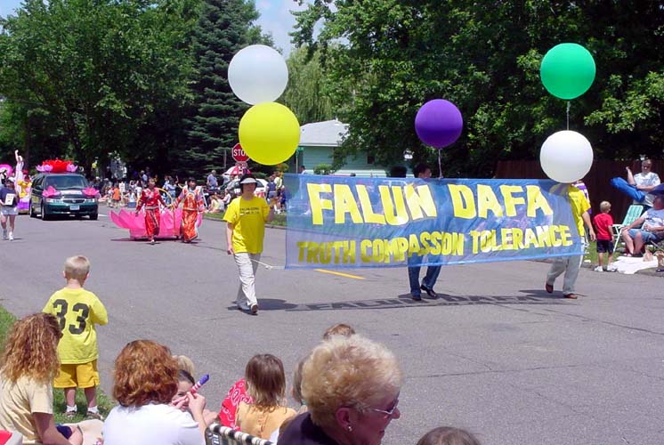 【明慧网2003年7月3日】2003年6月28日,美国明尼苏达州大法弟子参加布拉林市庆祝游行。
