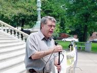 由旅美华人苟北、吴雪原博士夫妇发起的2000英里纽约--德州营救亲友汽车行抵达哥城,并于7月1日中午在俄亥俄州政府广场举行了新闻发布会,呼吁所有善良的人们帮助营救他们关押在中国大陆的亲友。一位辛辛那提大学的博士研究生也专程赶来参加了新闻发布会。