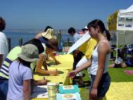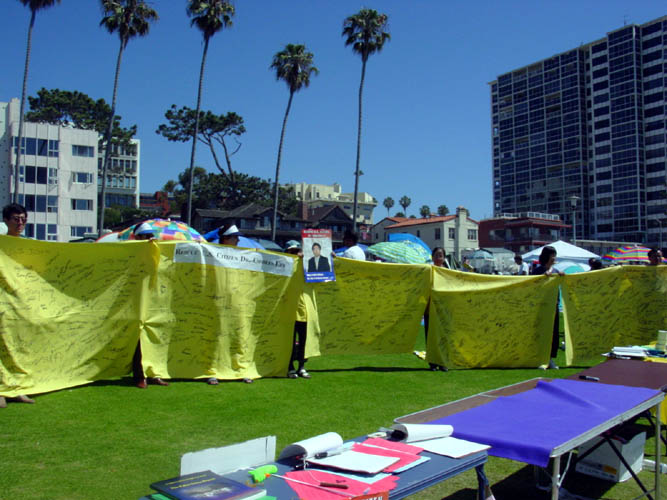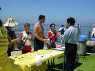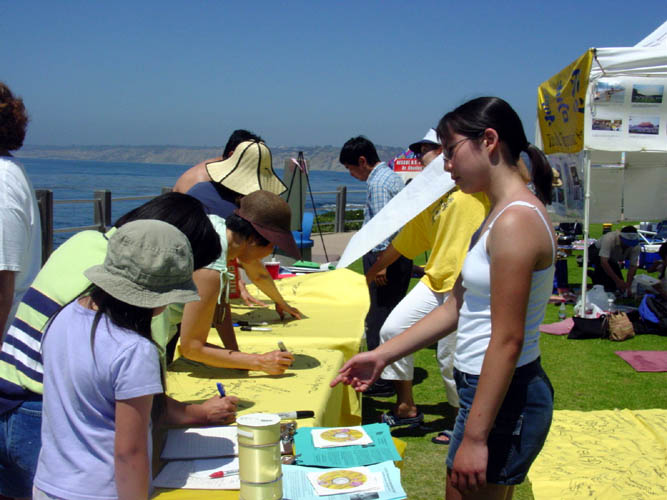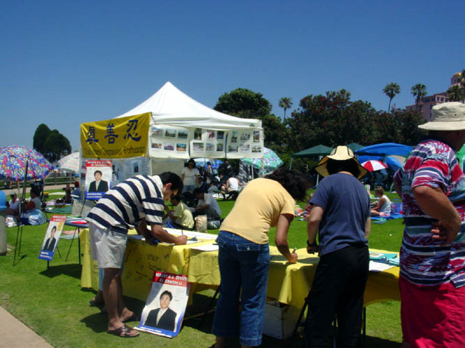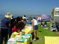 【明慧网2003年7月5日】值7月4日美国人民庆祝“独立节”之时,圣地亚哥的法轮大法弟子到当地著名的旅游景点拉荷亚海滨公园,以向在当地庆祝独立日的广大民众讲清真象和征集签名的方式,呼吁营救被江氏集团非法关押的美国公民李祥春。