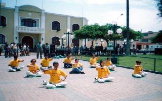 法轮大法在秘鲁-COMAS市政厅前展示功法