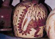 | 以恐龙为基本图形作简单而重复的边饰 | 描绘恐龙型态的陶器 | 以恐龙基本图形的边饰特写图,可见当时纺织技术之精良 |