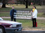 新闻发布会于上午11点在国会前举行,学员们先移聚在国会前炼功,而后发布会正式开始。法轮功学员代表欧文-赛德代表澳洲法轮功学员宣读了给霍华德总理的公开信。信中说:作为许多澳洲法轮功学员的代表,我们非常感谢您对法轮功在中国遭受迫害的关注,并诚恳的希望您在最近的访华时提及法轮功问题。