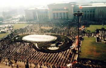 98年庆“10.1”法轮大法修炼者在河北省博物馆广场炼功,九千多人参加