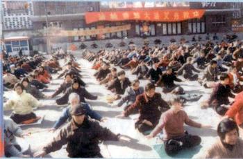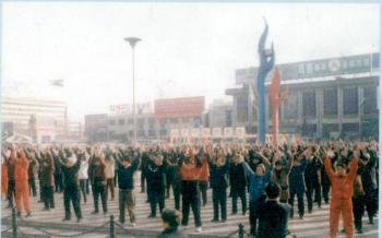 历史图片:法轮功学员大型炼功场面(河北石家庄)(图)