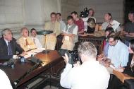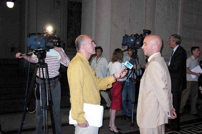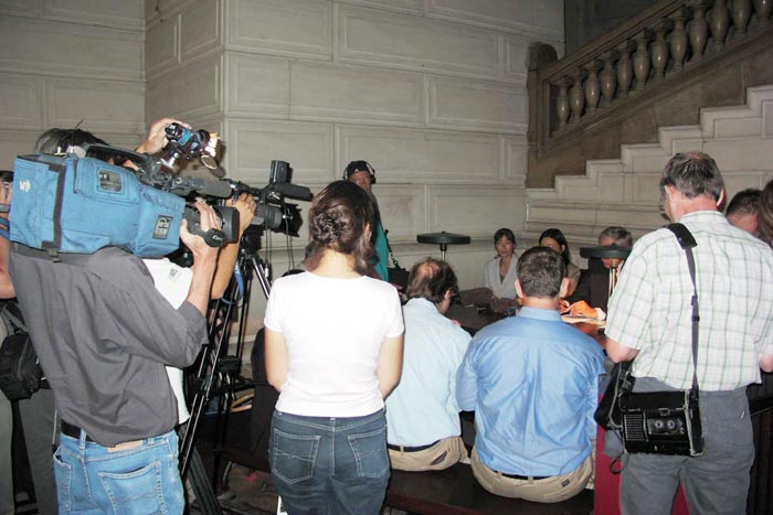 在新闻会上,波梯埃律师和作为原告的法轮功学员分别讲了话,并解答了记者们提出的问题。