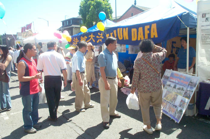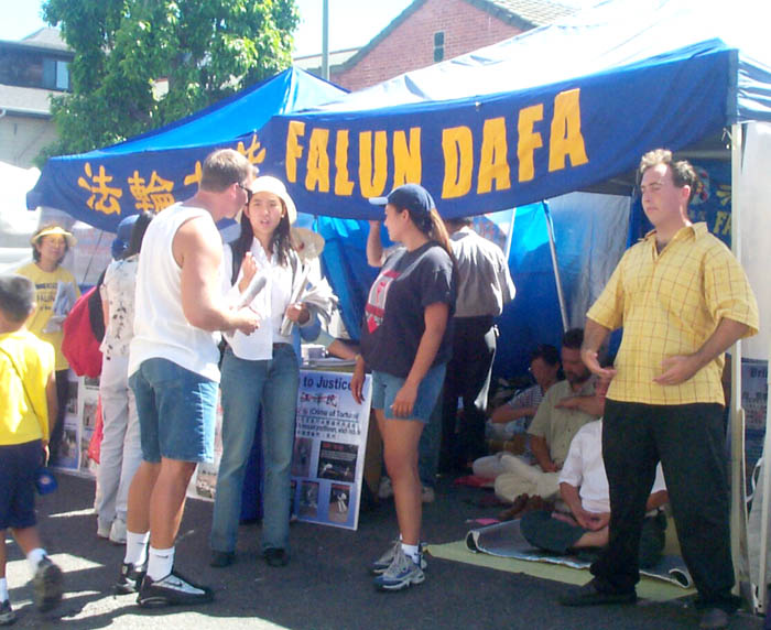 有一位西方人表示他是起诉北京官员刘淇的律师之一。他特意来我们的摊位索取资料。他说:“我很关注诉江这件案子。我也知道中国的人权状况很差。我想了解更多有关法轮功及迫害的情况。”他还将他的名片留了下来并表示很愿意再找时间跟学员交谈。