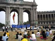 模拟法庭以“反人类群体灭绝,江泽民罪责难逃”的大幅标语为背景,由比利时一家西人弟子所制作的江××的模型,被放在“被告席”上。弟子们以发正念开始“审判”。一个个活生生的事例,一件件血泪的控诉,使弟子们更深地感受到,把邪恶之首押上良心法庭、道义法庭、人间法庭,是大法弟子主掌天地正人道义不容辞的责任,也是大法弟子在人间归正人心,呼唤人类基本道德价值的重大步骤。