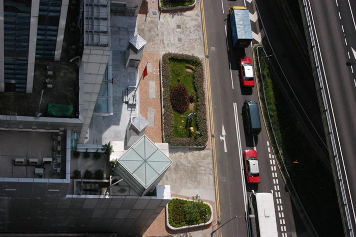 中联办前门本来宽九米半的行人道,加建花槽后宽度明显比以前窄