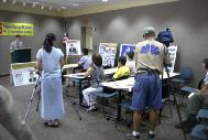 在这两次新闻发布会中,一些新学员积极参与,为新闻发布会成功尽心尽力。傍晚,堪城大法弟子与“营救李祥春跨美汽车之旅”的学员进行了小型的修炼经验交流。学员们互相介绍了在正法修炼中的体会和向可贵的中国人讲真相的办法。在交流中,一位在中国受过迫害的同修讲述了她在北京密云看守受迫害时的所见所闻,讲述了被关押同修所经受的电针,拷打,与体罚的折磨,交流了被迫害同修在受刑时对大法与师父坚定的正信正念。通过交流,学员们彼此启发受益颇多。