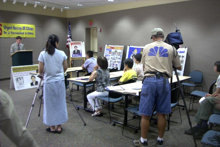 下午,车队抵达堪萨斯城,那里学员们在莱那克萨市图书馆举办了第二场新闻发布会。在新闻发布会上,学员们介绍了“营救李祥春跨美汽车之旅”路途情况。其中一个学员还讲述了他母亲由于修炼法轮功而被关入精神病医院迫害的情况。一个美国学员介绍他前年去中国证实大法被捕和随后遣返美国的经历。会后,学员们接受了太阳周报及NBC电视台的采访,学员就李祥春为何去中国及他受虐待的近况解答了记者的问题