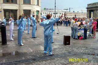 图片报道:莫斯科大法学员坚持户外炼功洪法