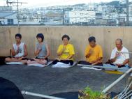 第一天发完资料后,就感到资料似乎不足,于是大阪的同修决定不惜高额运费快速寄来一批,第二天寄到了住在冲绳市的那位同修的家里。是临来冲绳之前从一位同修那里得到的这位同修的联系地址的。就这样,我们在她家住了两天。这位老年同修是15年前从台湾移居到这里来的,性格非常爽快,我们一见如故。她丈夫是日本人,虽然不炼功,但多次出车接送我们,还给我们做冲绳特色菜肴。老人家虽然已是73岁了,但夫妻二人都十分健康,精神饱满。据他讲,从前他患有疝气和腿痛等疾病,但是老伴每天早上在他身边炼功,致使他的所有病症都不治而愈。他兴高采烈地对我们说:“今天一直头痛得很厉害,还买来了药,但是由于你们的到来,不知为何头就不痛了,这药也不用吃了。法轮功真是神奇无比!”到了晚上,他为我们弹起了具有冲绳地方特色的三弦。清晨,在破晓前那段凉爽的时间里,我们在屋顶上炼功,发正念。那位老奶奶同修说:“我总是一个人,要是大家总能在一起该多好啊!”