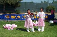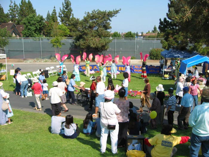 两天下来,学员们顶着烈日,不间断地表演着舞蹈并进行功法示范。尽管有累的感觉,汗水顺着脸颊而下,但是为了救度众生,他们都认真的把每一个动作做好,并赢得了阵阵掌声。学员们觉得在表演舞蹈时,也是在讲真象的一种形式,是和功法演示、发真象材料的整体配合。