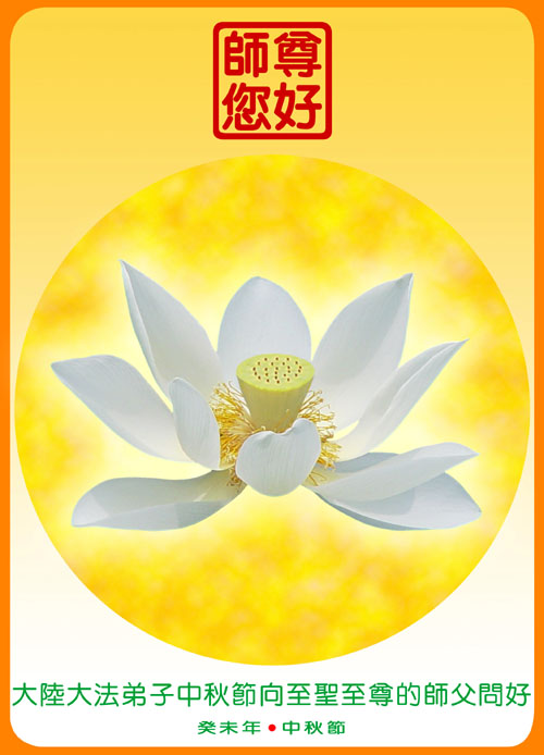 • 大陆全体大法弟子向慈悲伟大的师尊问好!敬祝伟大师尊中秋节快乐!