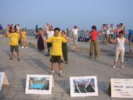 还有一对从德国来的中国夫妇,当学员递给他们真相资料时,他们说:“我们是从德国来的,在德国经常可以看到法轮功学员们,我们也都保存了他们发给我们的传单。我很同情你们的遭遇。这份传单你们就留下来吧,好送给那些还不了解真相的人们。”学员听后非常感动,大家真的感到了大法的威力。天象在变,人心也在变,已有越来越多的人了解真相了。