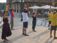 来自西班牙各地的大法弟子在一起炼功,学法
