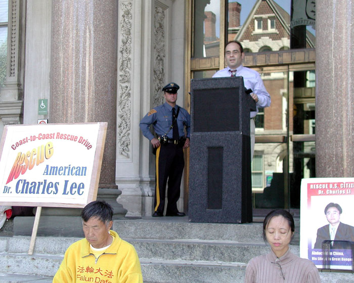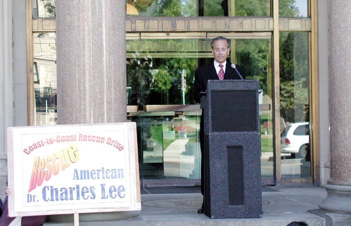 总部设在新泽西州的“法轮功之友”是这次跨美汽车之旅发起组织之一,执行主任艾伦-爱德乐先生表示,查尔斯-李医生被[中方]以“试图”在中国国营电视中播放揭露中国[江氏集团]迫害法轮功的节目而被推上了一个“审判秀”,此后他就被送进了中国的监狱。李医生是一位正义勇士,他的入狱仅仅是因为他修炼法轮功,并且拒绝接受江泽民强加给中国人民的谎言。