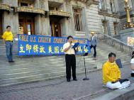 在中国经受三年多迫害,新近刚从中国被营救的法轮功学员陈刚(现居南泽西)也出席发布会。陈刚在会上亲述了他的个人遭遇,他说他能够体验李医生的境况,他现在回想起那段黑暗的日子都会非常的痛苦。他被监禁18个月,每天只能睡2到4个小时的觉。而且有一次连续15天不让睡觉,每次闭上眼睛马上被打醒。还经常被电棍电击,往往是多根电棍一起电击身体的敏感部位。