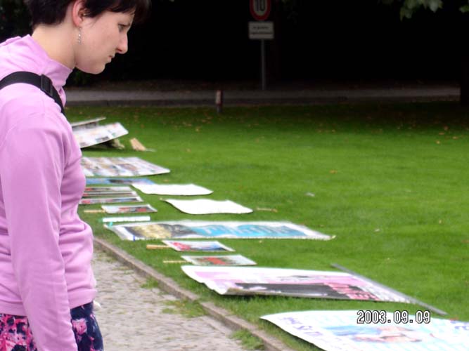 我们将四周来在瓦戈纳歌剧节上短短剧场休息时征得的近2000个签字原件递交给了总统办公室。另外还递交一套装订成册的副本,以便总统百忙之中翻阅德国主流社会的心声。签表上是8位德国学员的亲友照片和受迫害现状简介。