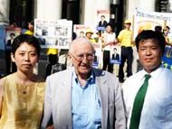 市长Shay(中)与当地法轮功学员合影曾因报导法轮功而获奖的自由撰搞人麦特-海参采访陈刚