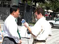 “特拉华县每日新闻”报社记者、自由撰搞人麦特-海参先生特地赶来采访。海参先生曾经因报导法轮功而在加拿大获得国际优秀写作奖,那篇获奖报导也被翻译成多种文字在国外Metro报纸转载。之前,当地的几家报纸得知此次“汽车之旅”在梅地亚市停留均很感兴趣,表示愿意转载海参先生的文章。