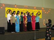 这次学员们准备了小提琴独奏、单人舞、多人舞、合唱及功法表演等几个节目。许多人看到在准备节目的学员时都问“你们几点演出?我到时会来看你们的节目!”合唱团演唱了“登归途”、“古怪歌”和“法轮大法好”三首歌。优美的旋律赢得了观众的掌声,一位白人老妇人问台下的学员,被反复唱的“法轮大法好”这句话是什么意思?为什么他们这么强调这句。学员就给她讲了炼法轮大法给人们带来的好处,但在中国却由于江XX的妒忌,不允许人们炼法轮功,炼就被抓、打、关进监狱,许多人失去了宝贵的生命。她听后说,“看来这句很重要,我一定要记住!”