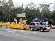 在装饰花车时,有的路过的民众看到「真、善、忍」横幅,主动过来跟学员说:「真、善、忍,我非常喜欢!」