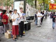 戴女士在巴黎的两个华人区向民众控诉江集团的罪行,路人纷纷驻足倾听,不少人为她家人的悲惨遭遇流下了眼泪。一对年轻的中国夫妇特意去买了一盒月饼送给戴女士,并请她多保重,场面十分感人。