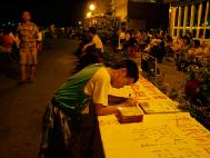 | 近千名法轮功学员参与 | 小朋友签名 | 澎湖县政府广场千人集体炼功 |