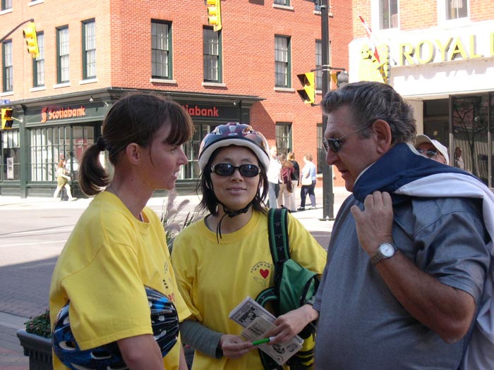 还有一名队员的丈夫,特地从多伦多给他参加自行车之旅的太太带来可口的饭菜,并与大家分享。另一女队员的先生也特地赶来支持,并告诉我们,救人比个人的事更重要。