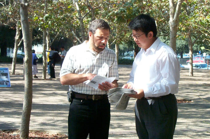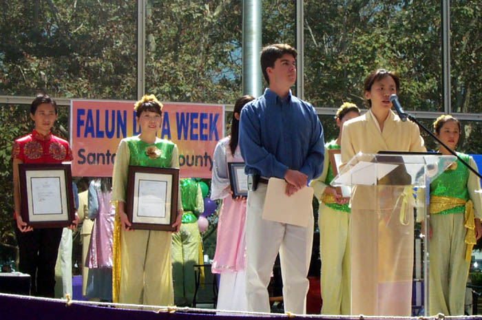 圣荷西市议员查克-理德在发言中指出:“一个政府害怕他的人民信仰‘真、善、忍’是令人惊讶的。修炼法轮功在我们国家是受法律保护的。在这里,人们有言论自由、宗教信仰的自由,以及和平集会的权利。美国不象中国政府,美国是个尊重人权的国家。重要的是我们不允许中国政府对法轮功的迫害渗入到这里。同时,我们反对中国政府对法轮功的迫害。”他还说:“我们敦促中国政府停止对法轮功的迫害。同时我们还会继续作出努力,与美国政府一起制止中国政府对非法关押的美国公民的迫害。”