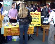 【明慧网2003年9月27日】九月三日星期三,悉尼法轮功学员最近参加了西悉尼大学Penrith分校举办的健康博览会。法轮功展位上有师父的教功录像及其他大法图片,以及种类丰富的真相资料供人们选取。学员们向观看的人们介绍着法轮大法的美好,讲述修炼与健康的关系。很多人对法轮大法显示出极大的兴趣,人们频繁地索取资料,询问炼功详情。