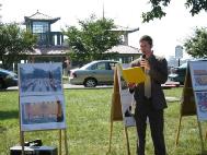 举办图片展和新闻发布会的地点在具有中国宝塔建筑风格的伊凡斯纬尔城来访接待中心。观看的美国人对图片展中,由大法学员组成的“真善忍”巨幅字样和法轮图形的图片留下了深刻印象。伊凡斯纬尔地方长官兰瑞-奥德勒被大法学员真诚的欢迎所感动。随后,大法学员演示了法轮功法,一位大法学员还用笛子演奏了一曲流传中国七千年之久的古乐。当地主要电视台采访了此次活动并在新闻中播出。