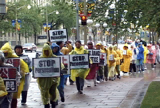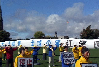促总理维护人权 加法轮功学员国会前公审江(图)