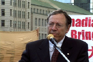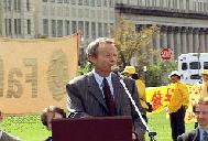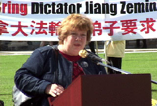【明慧网2003年9月28日】(明慧记者渥太华报导)来自多伦多等城市的数百名法轮功学员及支持者于9月25日在加拿大首都渥太华国会山及加拿大最高法院前举行大型集会、游行,设道义法庭公审发动迫害的元凶江泽民;同时呼吁即将访华的加拿大总理帮助营救他们受迫害的亲人、全面停止对法轮功长达4年的迫害。“追查迫害法轮功国际组织”代表麦特-希尔波特(Matt Hildebrand)发言。6位国会议员到场支持并发表演讲,他们是国会人权委员会主席欧文-考特勒(Irwin Cortler)、国会外交委员会副主席斯铎克维尔-德维(Stockwell Day)、戴慧思(Libby Davies)、罗伯-安德斯(Rob Anders)、吉斯-马丁(Keith Martin)和大卫-乔高(David Kilgour)。