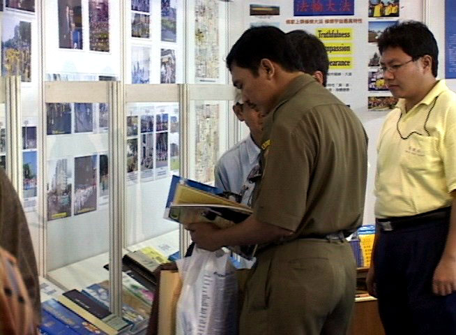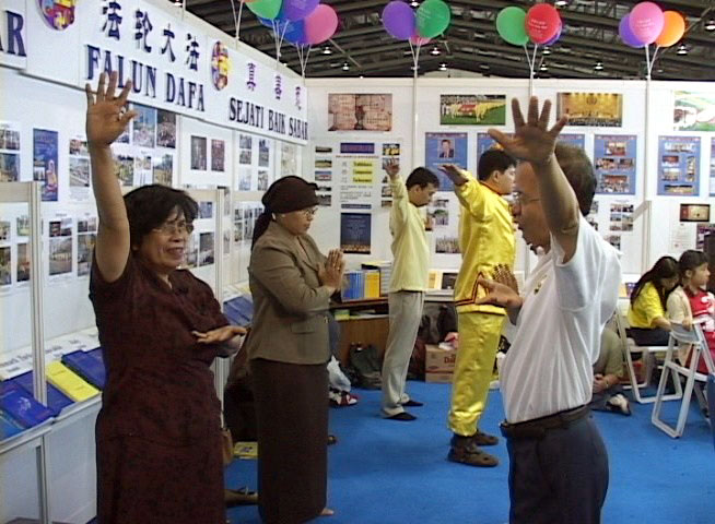 展观的人们要买炼功的CD回家炼印尼的官员要买《转法轮》看见炼功,就当场要学