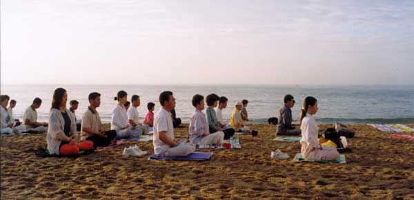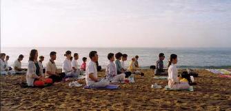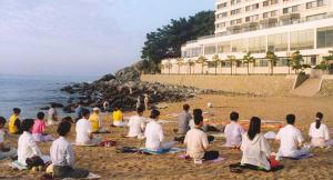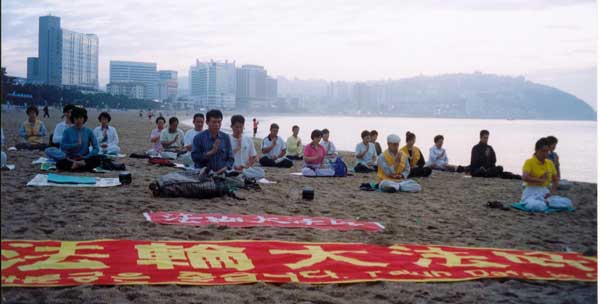 【明慧网2003年9月5日】获悉中国人大常委会委员长吴邦国来韩访问,并住在海云台朝鲜海滨饭店,韩国釜山学员立即于9月4日凌晨前抵达该地,在饭店前的沙滩上炼功、发正念,抗议江氏集团对法轮功学员的残酷