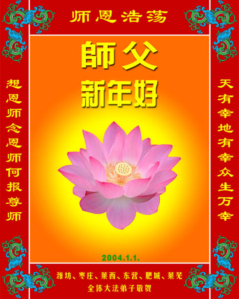 值此新年到来之际,我们东营地区全体大法弟子以最崇敬的心情向至尊至上的师父恭贺新年好!我们为能成为师父的弟子深感无尚荣光! 我们真诚感谢师父的慈悲苦度!