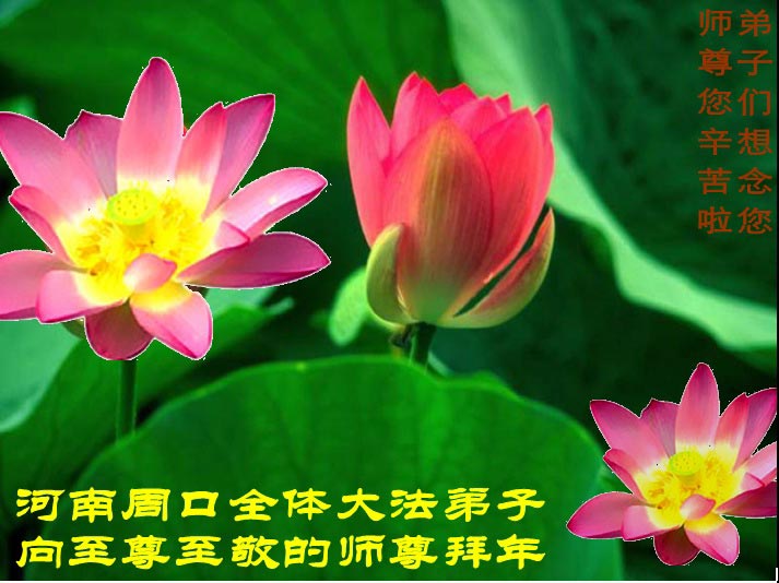 师尊:周口全体大法弟子想念您!千言万语无法表达弟子们对您的崇敬!在新的一年里,我们要多去执著,整体配合,共同做好师尊教导的三件事,不辜负师尊恒古的苦度。