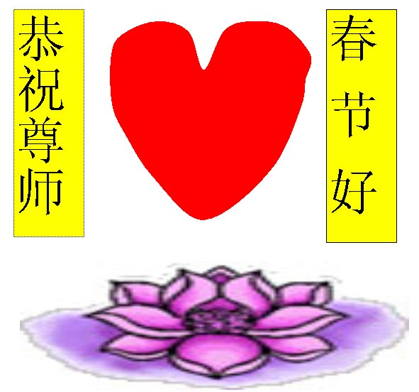 在此新春佳节来临之际,让我们双手合十,给敬爱的慈悲伟大的师尊拜年:师尊,新年好,春节愉快!