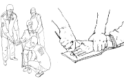“军蹲” :最邪的一种体罚还是军蹲,劳教所恶警经常用这种姿势长时间体罚法轮功学员。这是军队士兵队列训练里面的一种暂时性姿势,就是两脚前后间隔半步蹲下,后脚只前脚掌沾地,又承担主要重量,一般人只要蹲几分钟脚就很疼了,时间一长后,脚和小腿极其痛苦,直至完全失去知觉。 赵明 在新安劳教所期间,有一阵恶警找一些少年劳教犯按着他军蹲,一只脚失去知觉了再交换前后脚接着蹲,一天十来个小时,最后两脚的脚掌都剧痛无比,象脚的骨头直接站在地上。