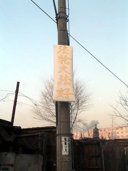 悬挂真相条幅 清除邪恶标语