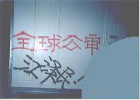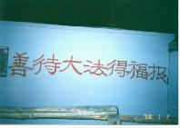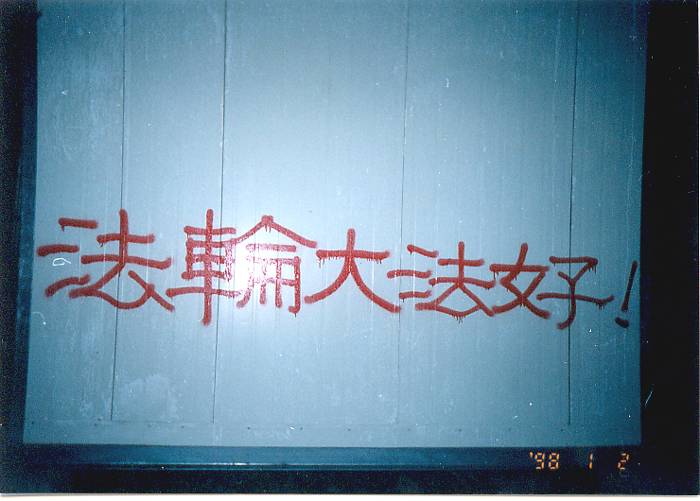 【明慧网2004年1月29日】东北某市的大法弟子喷字时拍的照片,由于相机的日期没有调整为当前的日期,所以看到的是98年。